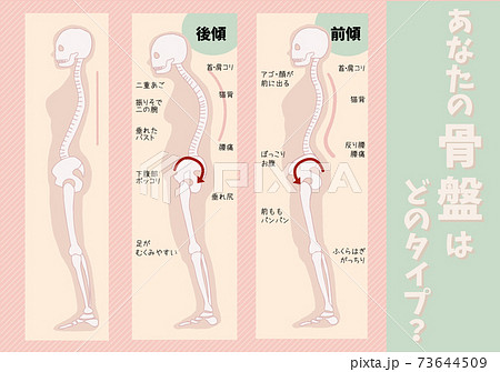 骨盤の前傾・後傾を表したイラストと体への影響を説明した素材