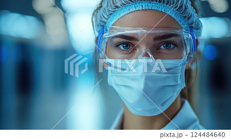 Healthcare professional in surgical mask and cap examines tool with focus and precision, showcasing dedication to patient care
