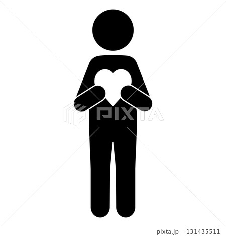 ハートを抱える人物のシルエットアイコン・感謝や思いやりを表現