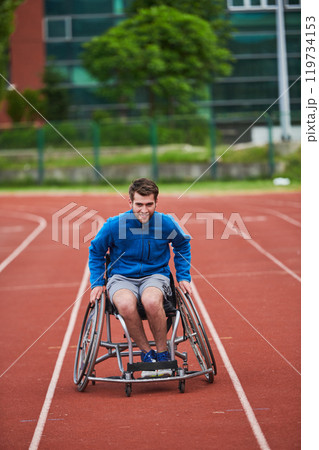 A person with disability in a wheelchair training tirelessly on the track in preparation for the Paralympic Games