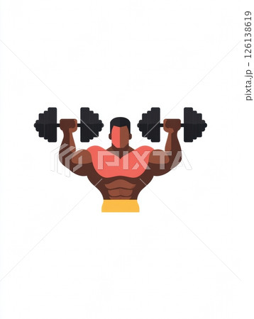 Muscular arms are showcased holding a barbell in a flat style, symbolizing strength and dedication to fitness. This design highlights physical training.