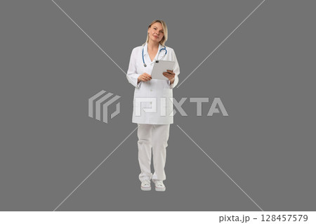Portrait of Smiling Female Engineer, Isolated on White Background. Generative ai