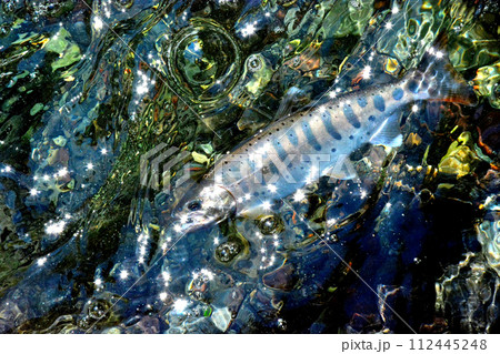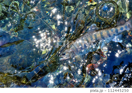 蒼龍峡の泡立つ流れの中からヤマメが浮いてきた
