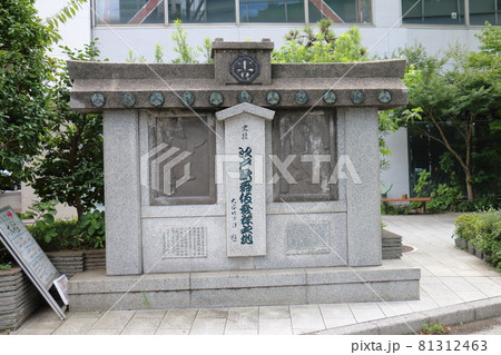 東京都中央区京橋3丁目 江戸歌舞伎発祥の地碑 1624(寛永元)年 猿若中村勘三郎 1957年建立