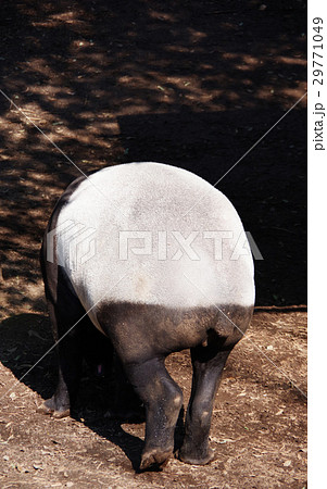 晴れた日に、日差しの中をゆっくりと歩くマレーバク
