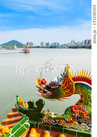 台湾高雄の蓮池潭上にある北極玄天上帝像