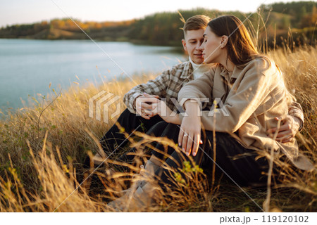 Stylish couple walking autumn weather. People, lifestyle, relaxation concept. Autumn Fashion concept