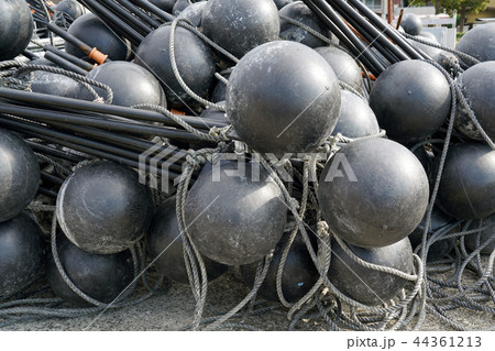 漁港で山積みにされたカラフルな玉ブイ/The heap of fishing buoy