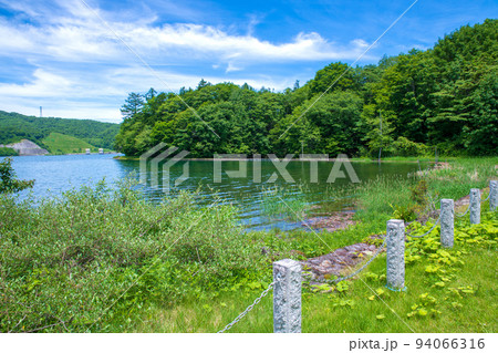 玉原湖 玉原ダム 湖畔の風景 初夏の季節