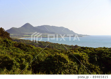 玉取﨑展望台からみた平久保半島と珊瑚礁に囲まれた太平洋の青い海