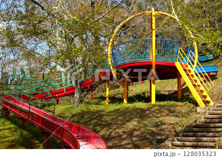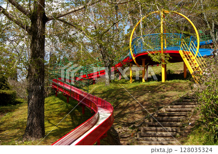 熊本県南関町 大津山自然公園 カラフルな滑り台のある風景