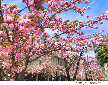 東京紀尾井町・紀尾井町通リの八重桜並木