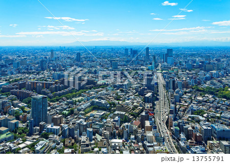 日本の東京都市景観 三軒茶屋駅やキャロットタワーなどを望む