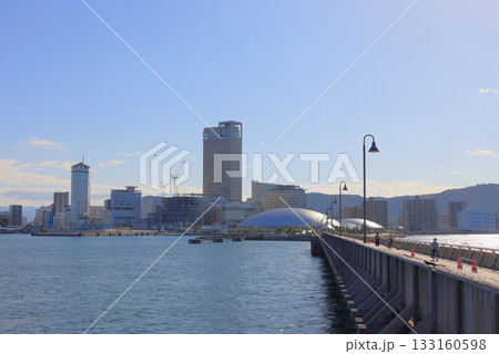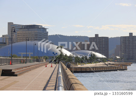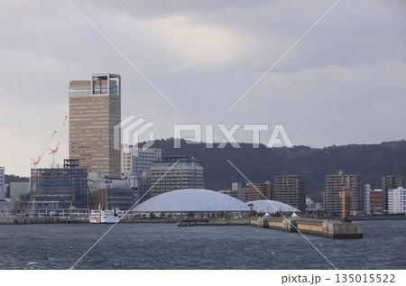 サンポート高松のあなぶきアリーナ香川を玉藻防波堤から見る