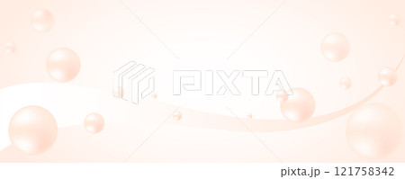ピンク色の背景に白とピンクの複数の球体。背景素材。コピースペース(横長)