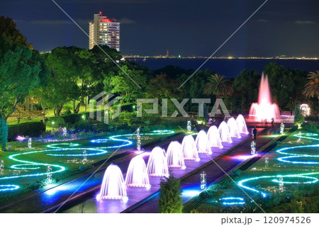 【兵庫県】バラが満開の須磨離宮公園の夜景(紅葉と噴水のファンタジー)
