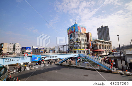 日本の東京都市景観 王子駅前歩道橋などを望む