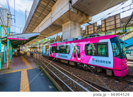 日本の東京都市景観 王子駅前の東京さくらトラム(都電荒川線)を望む