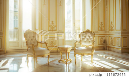 ヨーロッパアンティーク調の部屋に明るい日差し Sunshine antique European