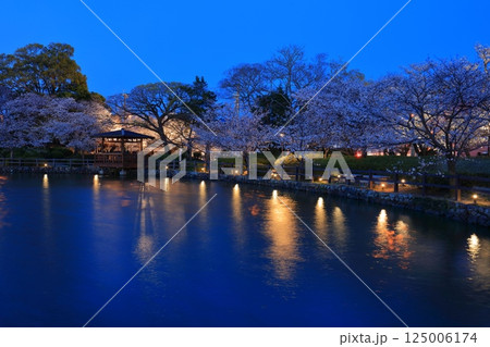 【長崎県】大村公園の桜田の堀と満開の夜桜(玖島城)
