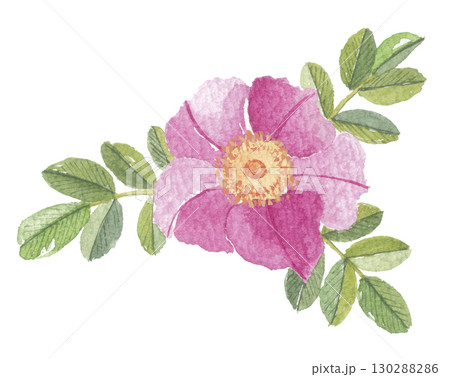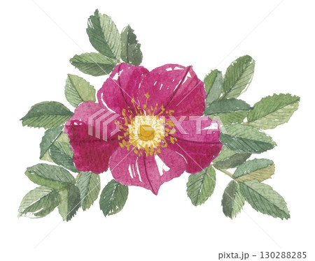 水彩で描いた浜茄子 ハマナス