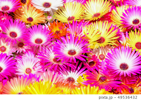 春3月ピンクとオレンジ色のリビングストンデージーの花