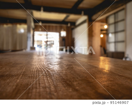 Wooden Counter bar Cafe Restaurant Interior Blur background