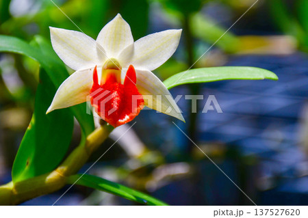 Exquisite Dendrobium Frosty Dawn Orchid with Vibrant Red Lip