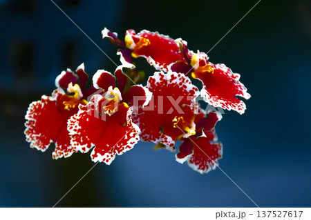 Vibrant Red Tolumnia Orchid with White Speckled Edges