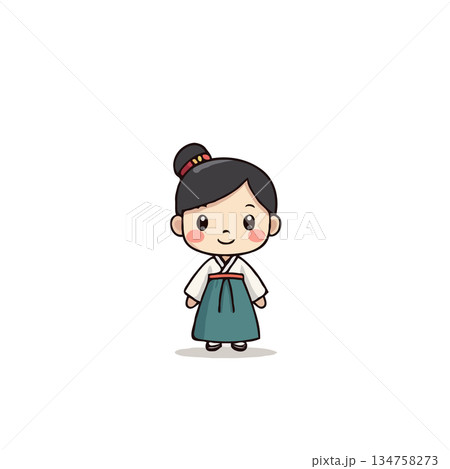 Charming depiction of a Korean girl in traditional hanbok costume presenting cultural heritage