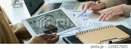 Group business people team meeting together while woman presenting and explaining about planning.