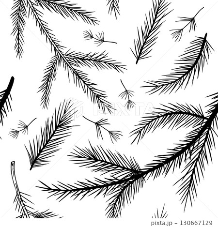 Festive Natural Seamless Vector Pattern with Spruce Branches Black and White