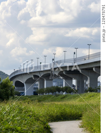 猪名川河川敷から見上げる阪神高速道路の高架道