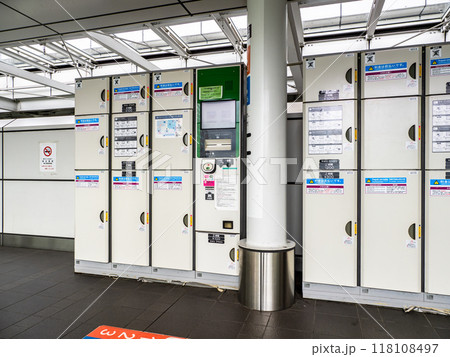駅に設置された交通系ICカード対応コインロッカー(貸しロッカー)