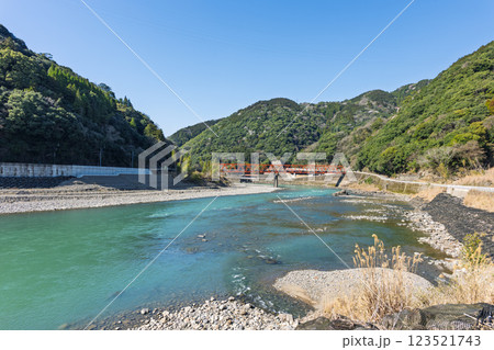 春日和 大自然の山並みを背景に映える球磨川風景 (球磨郡球磨村)