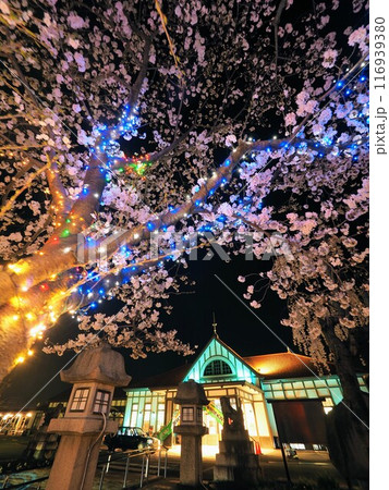 琴平町のライトアップ(夜桜リフレクション)【香川県仲多度郡琴平町】