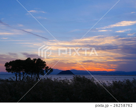 滋賀県長浜市 湖北野鳥センターからの琵琶湖の夕景