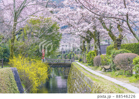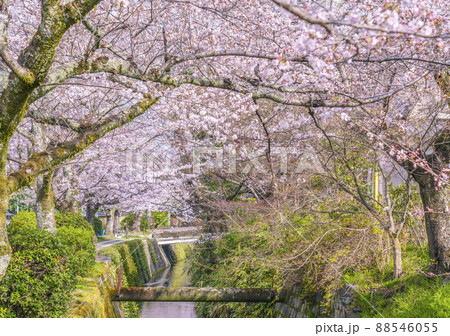 京都疎水べりの桜並木 お花見イメージ 春爛漫の京都 疎水こみち
