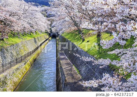 京都疎水べりの桜並木 お花見イメージ 春爛漫の京都 疎水こみち