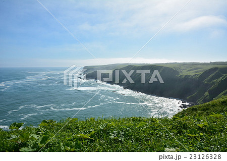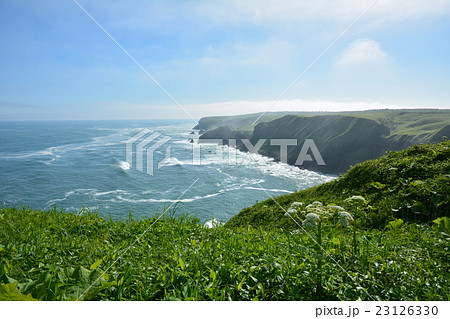 琵琶瀬から望む嶮暮帰島と太平洋の夏景色(北海道浜中町)