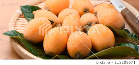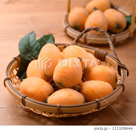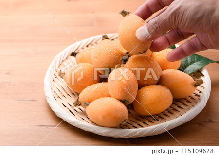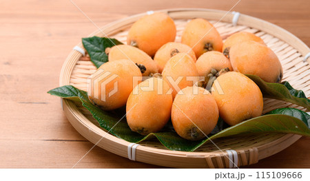 初夏の味覚 びわ (香川県産)大薬王樹 木目背景