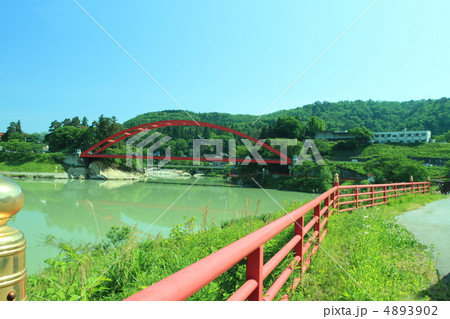 福島県柳津町 瑞光寺橋から撮影した只見川の紅葉とリフレクション