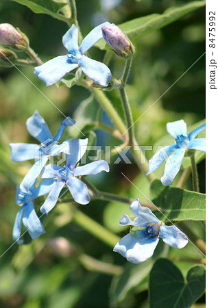 蔓性の植物、五弁の青い花、色が変化する花、お祝いに使われる花、
