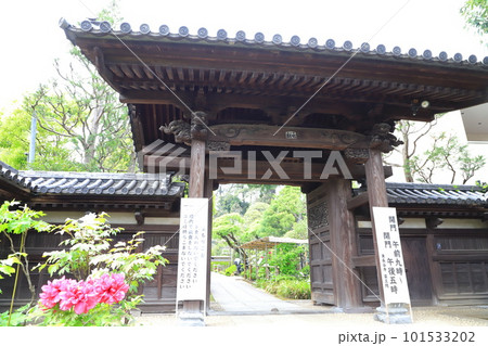 薬王院(やくおういん) 牡丹と山門 新宿区下落合