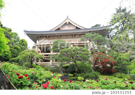 薬王院(やくおういん)たくさんの牡丹のある境内 新宿区下落合