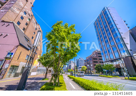 日本の東京都市景観 虎ノ門ヒルズ側から、新橋四丁目東方向や自転車専用道路。奥に汐留のビル群