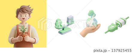 Vector illustrations depicting sustainable business concepts, highlighting elements like carbon neutrality, ESG practices, and renewable energy solutions. Emphasizes sustainability in corporate