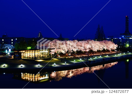 富岩運河環水公園 遠景(富山市湊入船町 2021年3月)