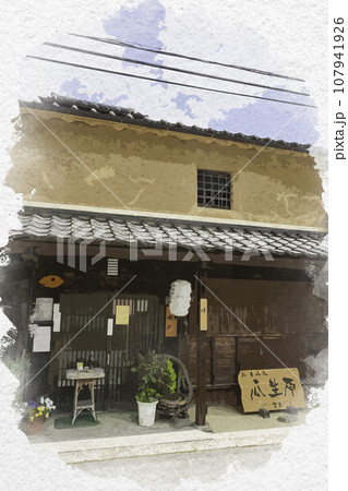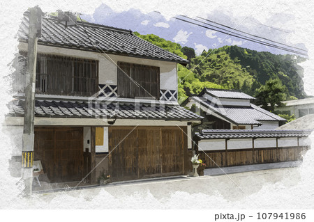 水彩画風 平福 平福の街並み 兵庫県佐用郡佐用町