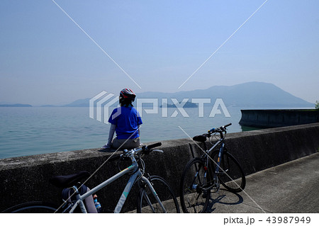 ひょうたん島と女性サイクリスト しまなみ海道 大三島